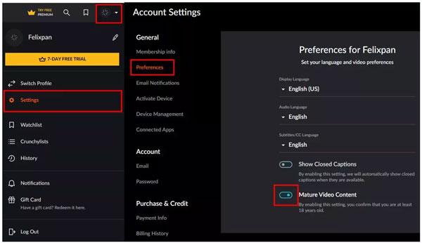 Step 1. Log in to your Crunchyroll account and access your account settings.