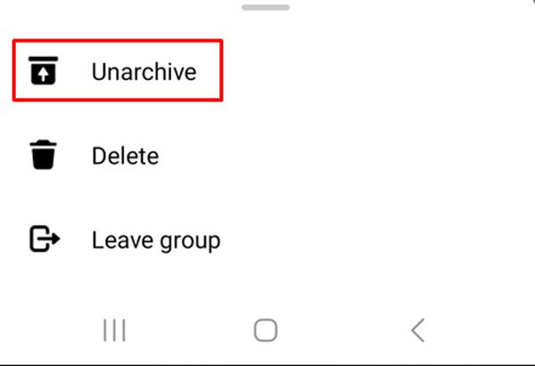 - Step 3. If you’re looking for a specific conversation, swipe left for iPhone users or tap the three dots for Android users. A pop-up menu will appear. Choose “Unarchive,” and the chat will be in your inbox.
