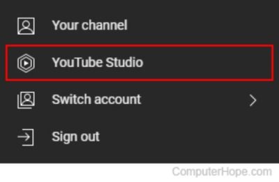 - Accedi a YouTube sul tuo computer e apri YouTube Studio facendo clic sull'icona del tuo profilo.